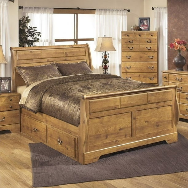 Ashley Furniture Bittersweet Wood Queen Drawer Sleigh Bed In Light Brown Walmart Com